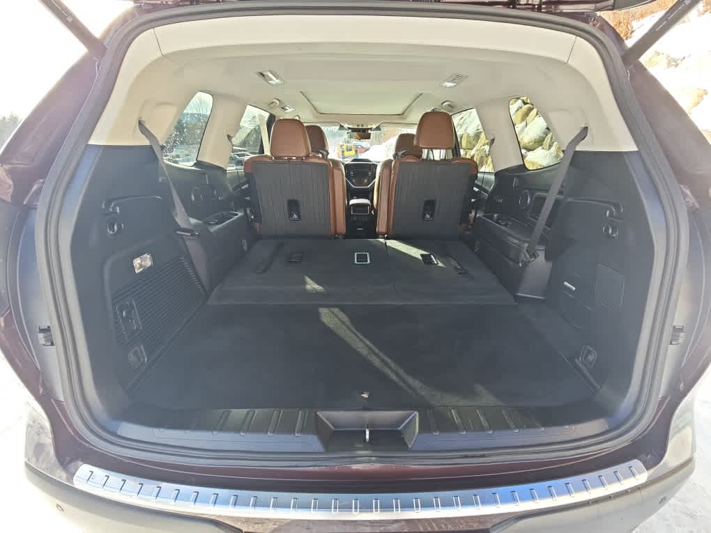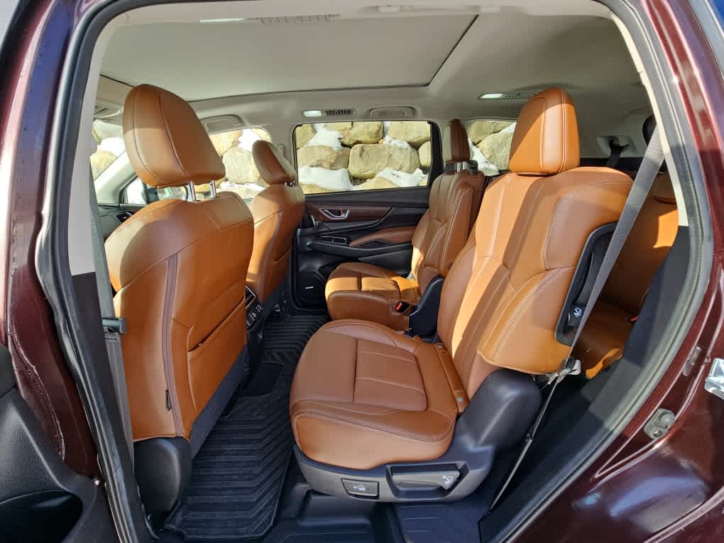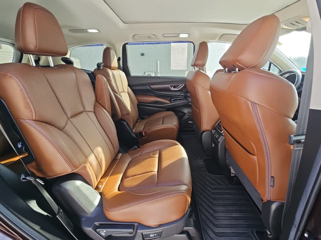 Dark Mahogany Pearl exterior and Java Brown w/Tan interior. CARFAX 1-Owner, Excellent Condition, Subaru Certified. Heated Leather Seats, 3rd Row Seat, Navigation, Sunroof, Alloy Wheels, Captains Chairs, Panoramic Roof.