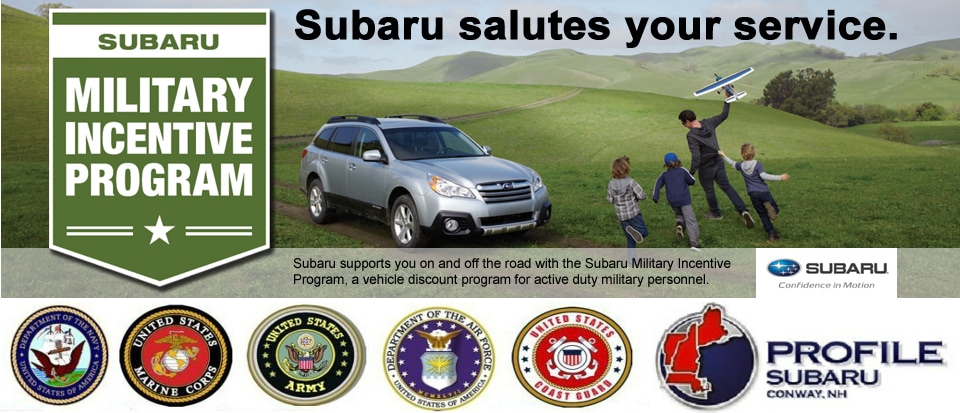 Subaru offers a special discount to active duty members and recent retired Veterans