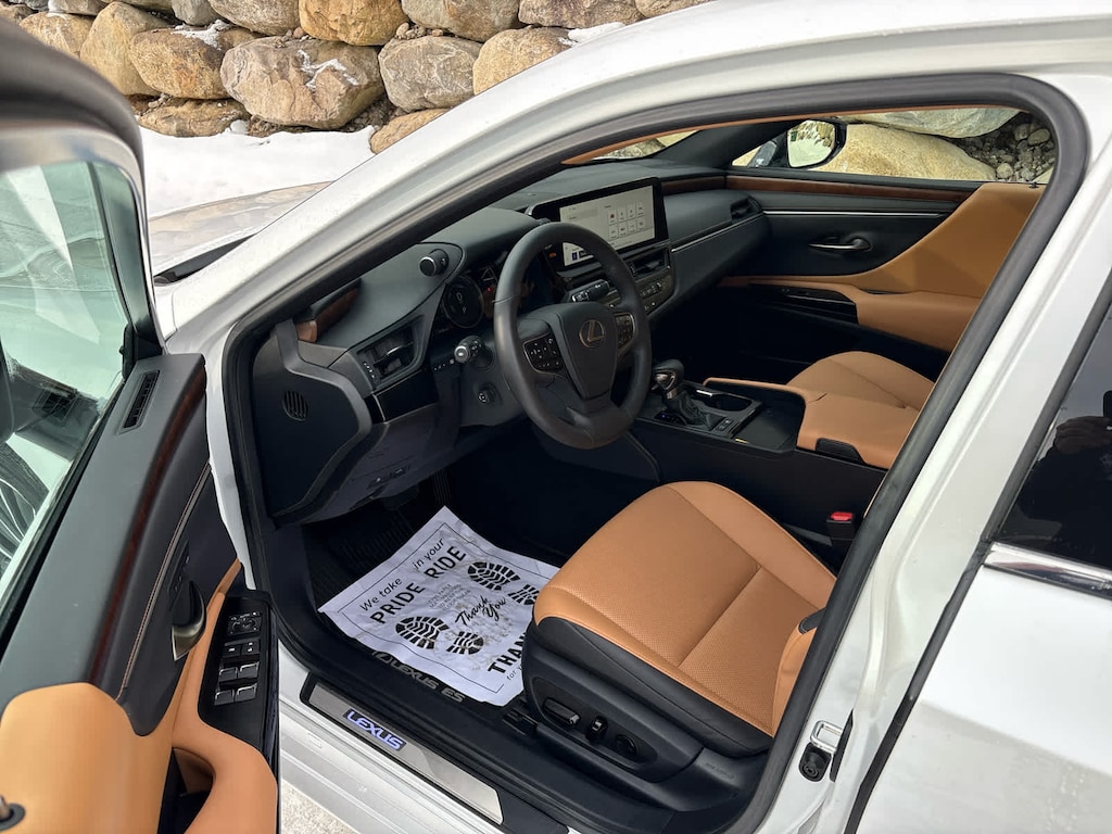easy enttry (drivers seat), Wireless Charger, Windshield Deicer, Heated Leather 3-Spoke Steering Wheel, Rain Sensing Wipers, Power-Folding Outside Mirrors w/Memory, auto tilt-down reverse, Power Tilt/Telescoping Steering Wheel w/Memory, Intuitive Parking Assist w/Auto Braking, rear cross-traffic alert, Heated & Ventilated Seats, drivers seat memory, Parking Support Alert/Brake, 12.3 color multimedia touch-screen display, DVD, 10 speakers, Lexus Enform Dynamic Navigation (included for the first three years of ownership), Dynamic Voice Command (included for up to the first 10 years of ownership) and Lexus Enform Destination Assist (included for up to the first three years of ownership), Electrochromatic Rearview Mirror, 2-tone black machined finish, Tires: 235/45R18 AS, ambient illumination inside handle and door trim, Carpet Trunk Mat, Rear Bumper Applique, Key Gloves, Alloy Wheel Locks, Cargo Net.